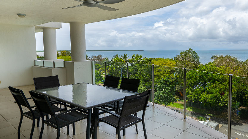 - Separate dining area and large living area opening onto balcony with views of Trinity Inlet
